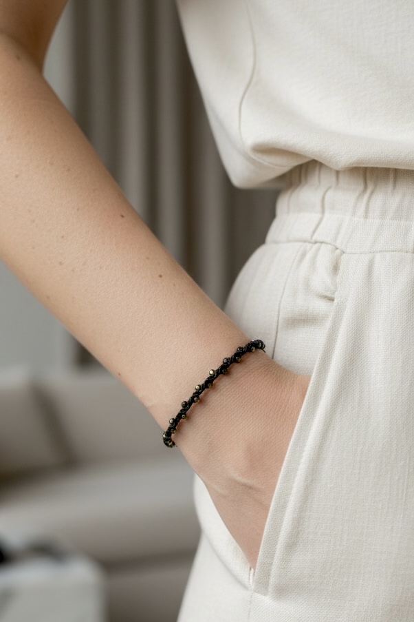 Material: Gewachstes Garn, Facettierte Glasperlen