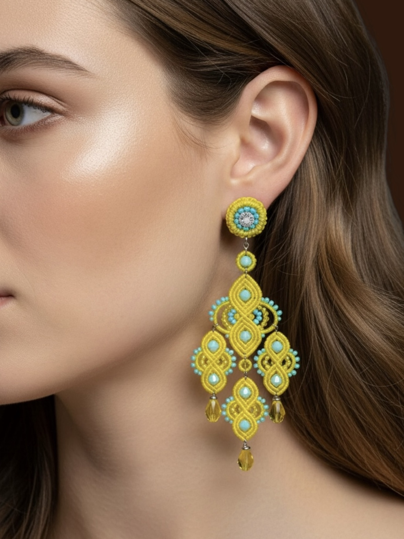 Material: Edelstahl, Silikon-Ohrringverschlüsse (10 mm Ø), Facettierte Glasperlen, Miyuki/Toho Perlen, Gewachstes Garn, Strasssteine