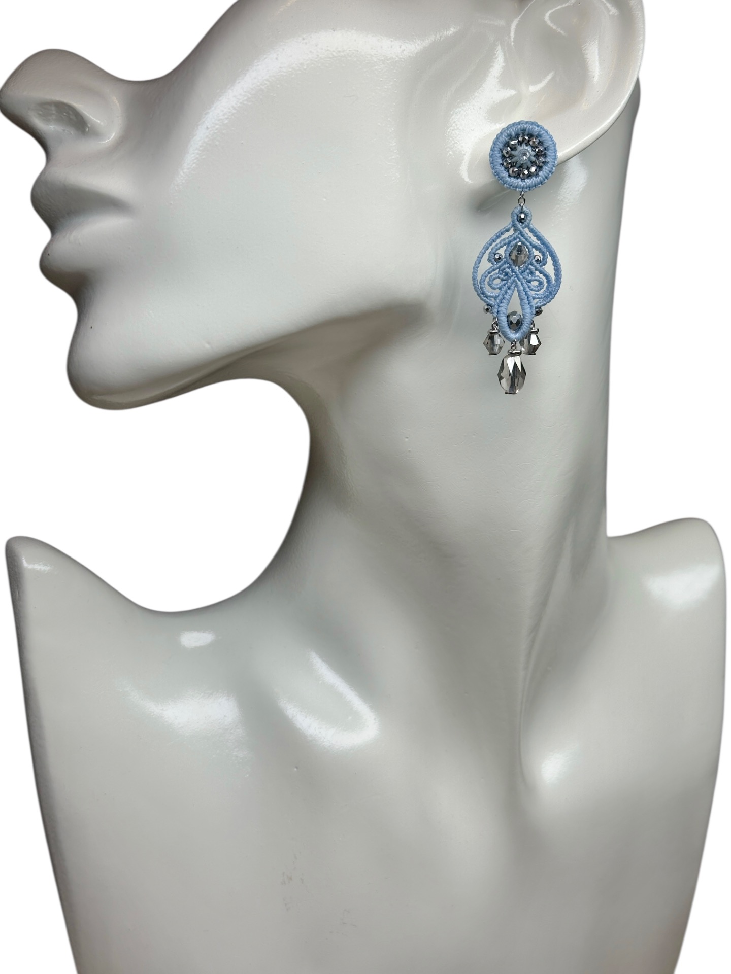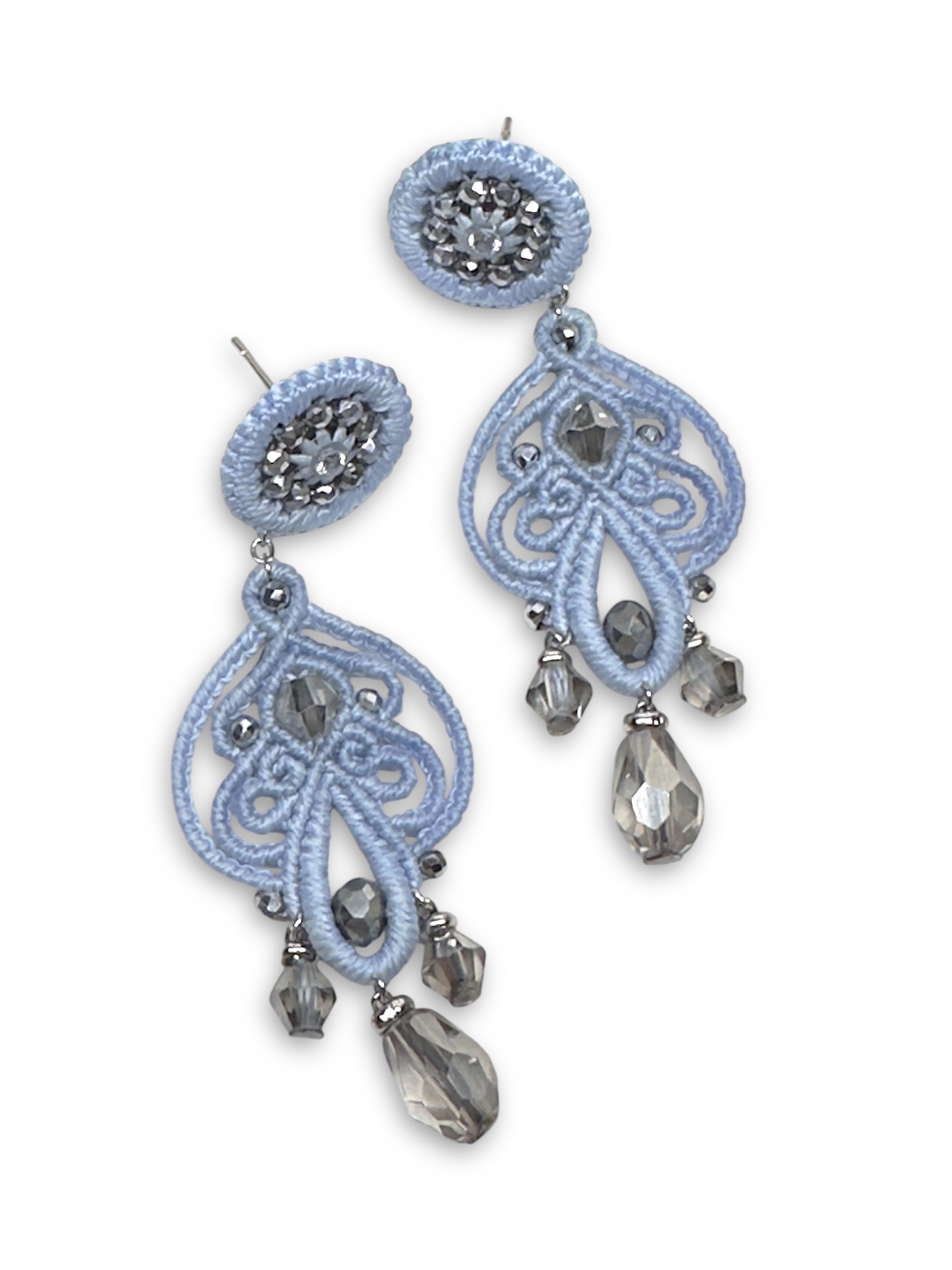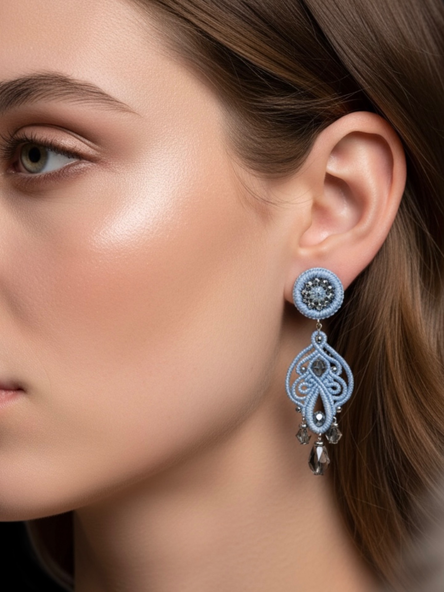 Material: Edelstahl, Silikon-Ohrringverschlüsse (10 mm Ø), Facettierte Glasperlen, Gewachstes Garn, Strasssteine