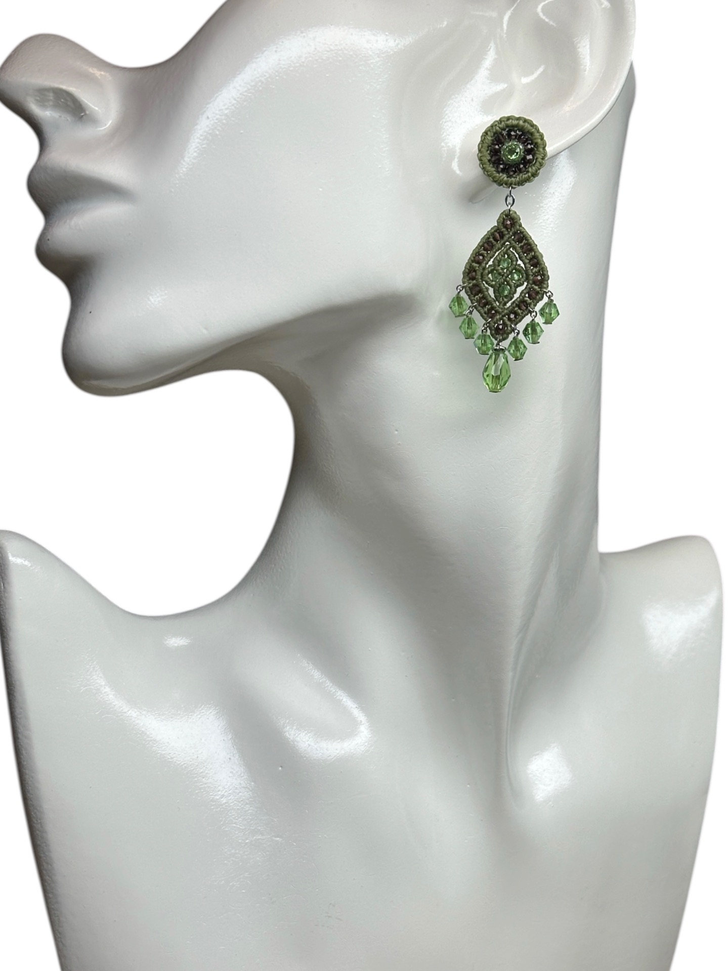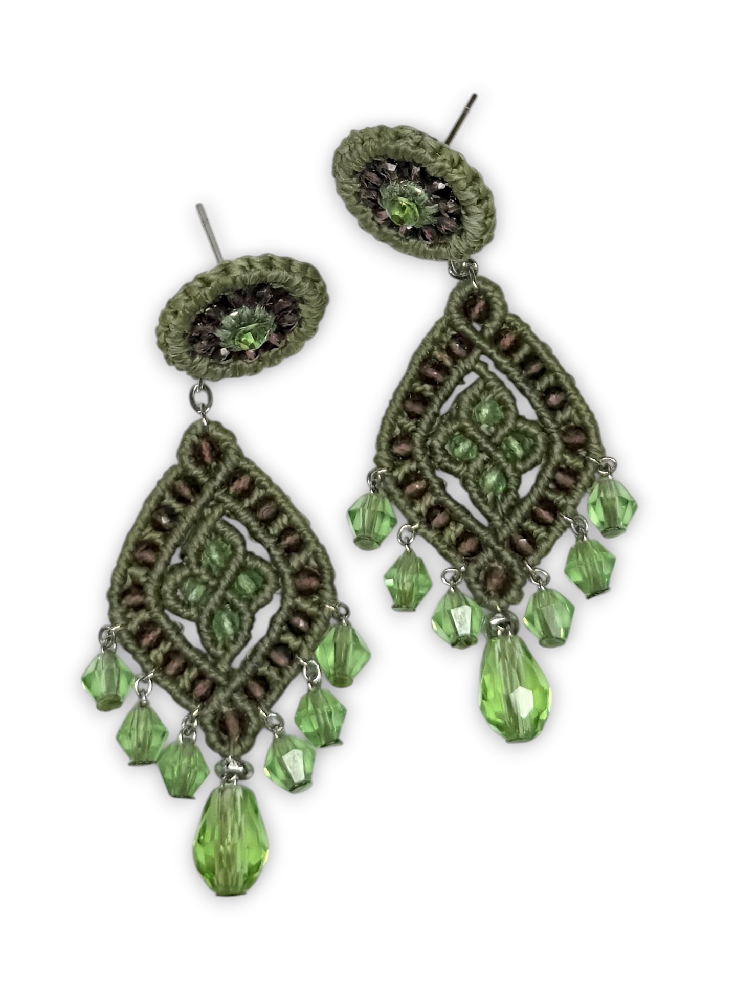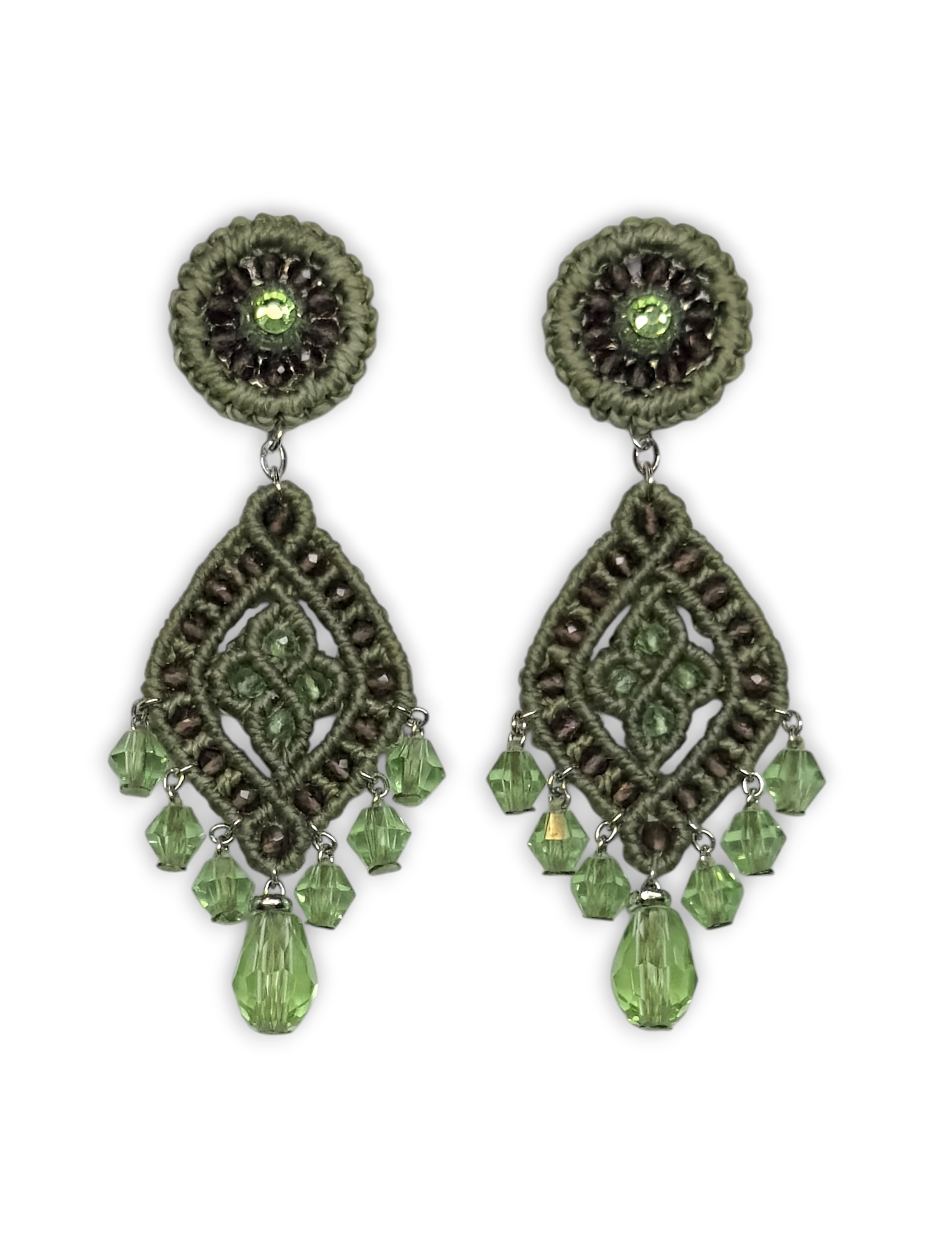 Material: Edelstahl, Silikon-Ohrringverschlüsse (10 mm Ø), Facettierte Glasperlen, Gewachstes Garn, Strasssteine
