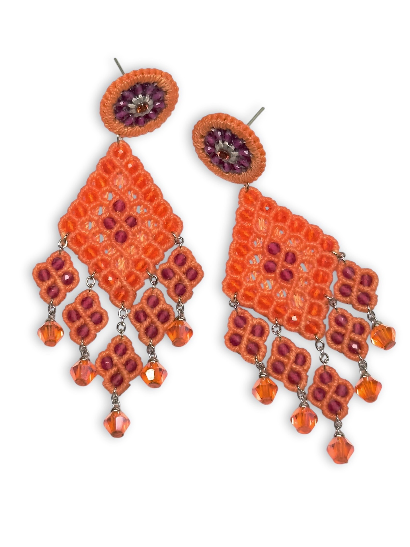 Material: Edelstahl, Silikon-Ohrringverschlüsse (10 mm Ø), Facettierte Glasperlen, Gewachstes Garn, Strasssteine