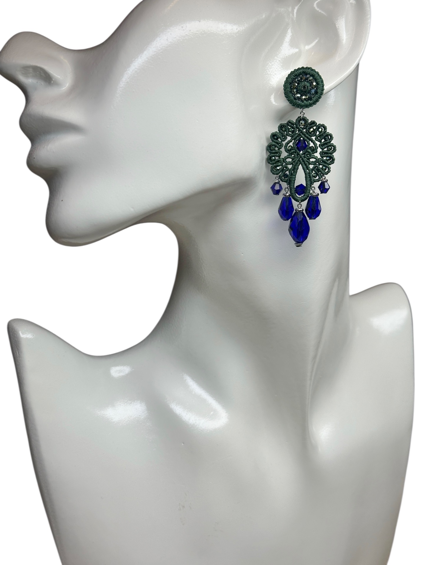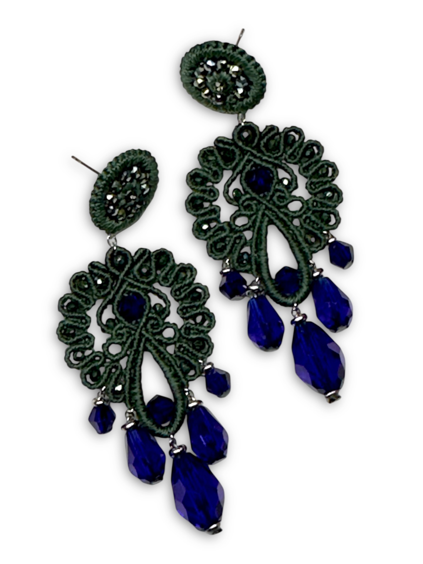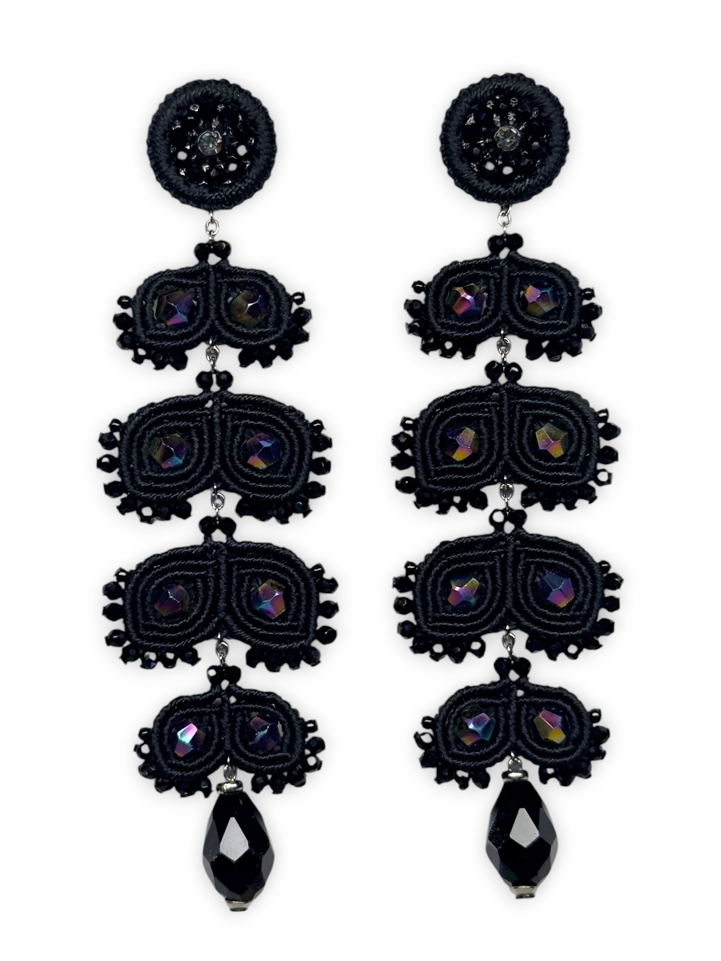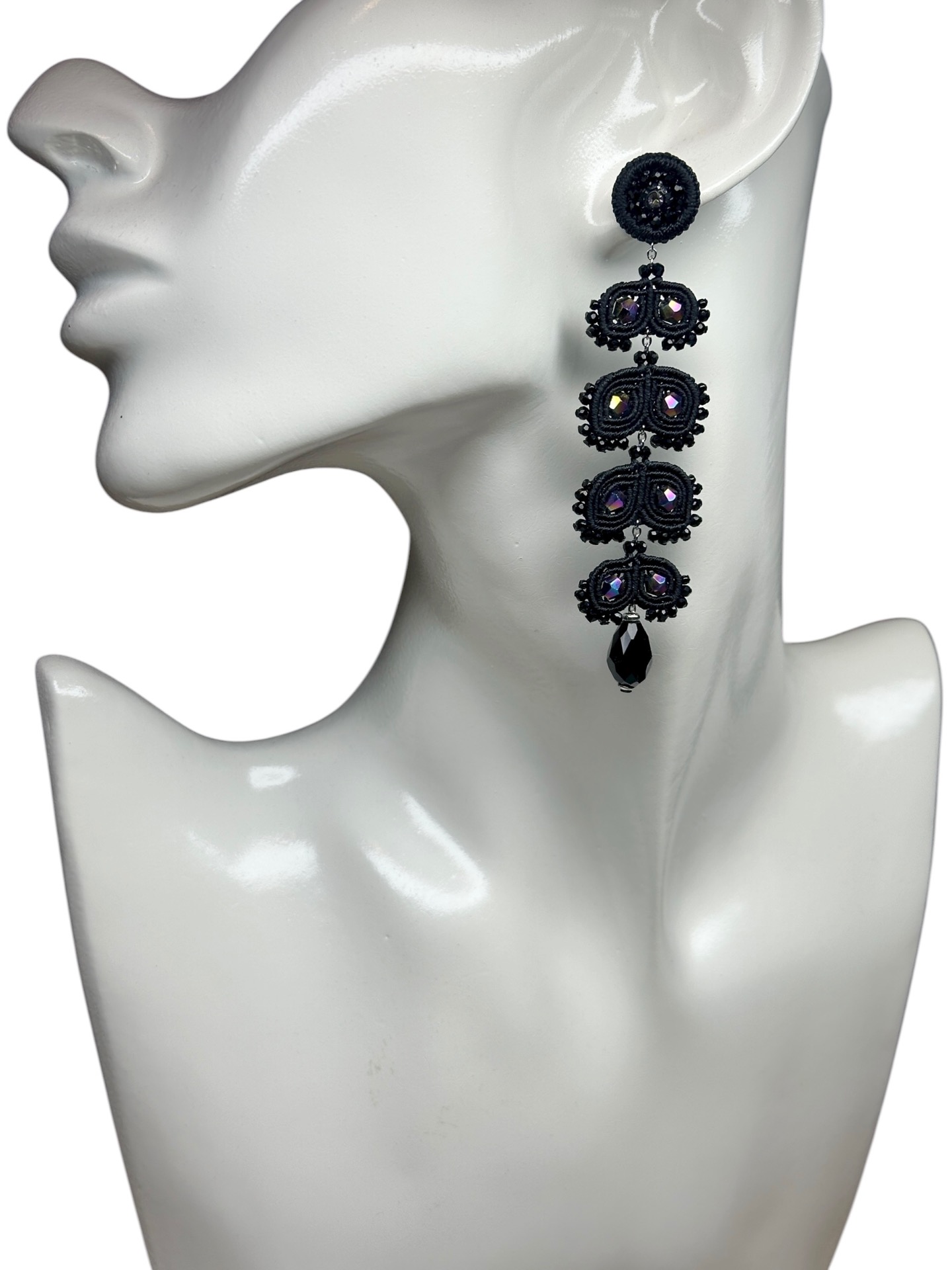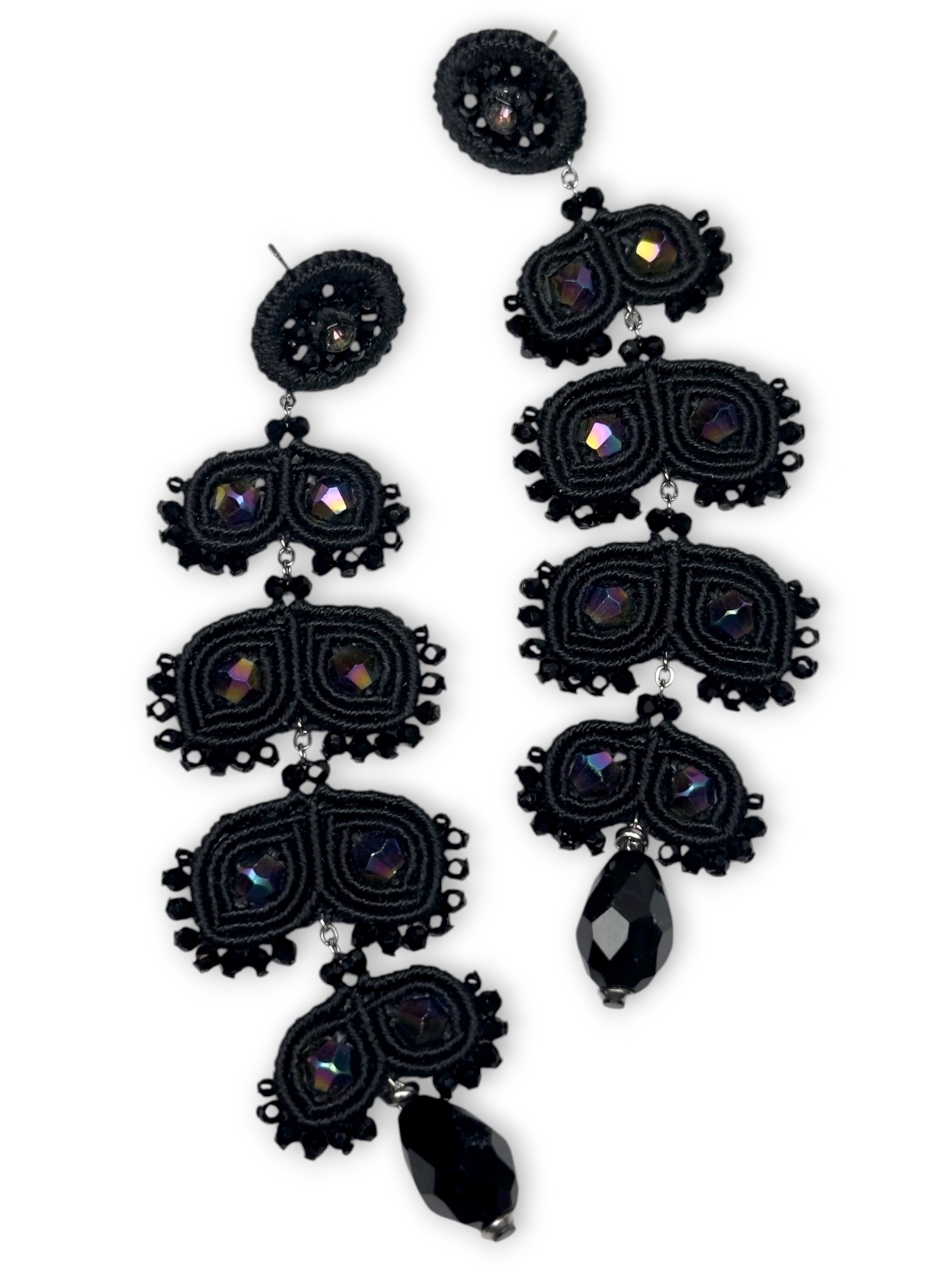 Material: Edelstahl, Silikon-Ohrringverschlüsse (10 mm Ø), Facettierte Glasperlen, Gewachstes Garn, Strasssteine