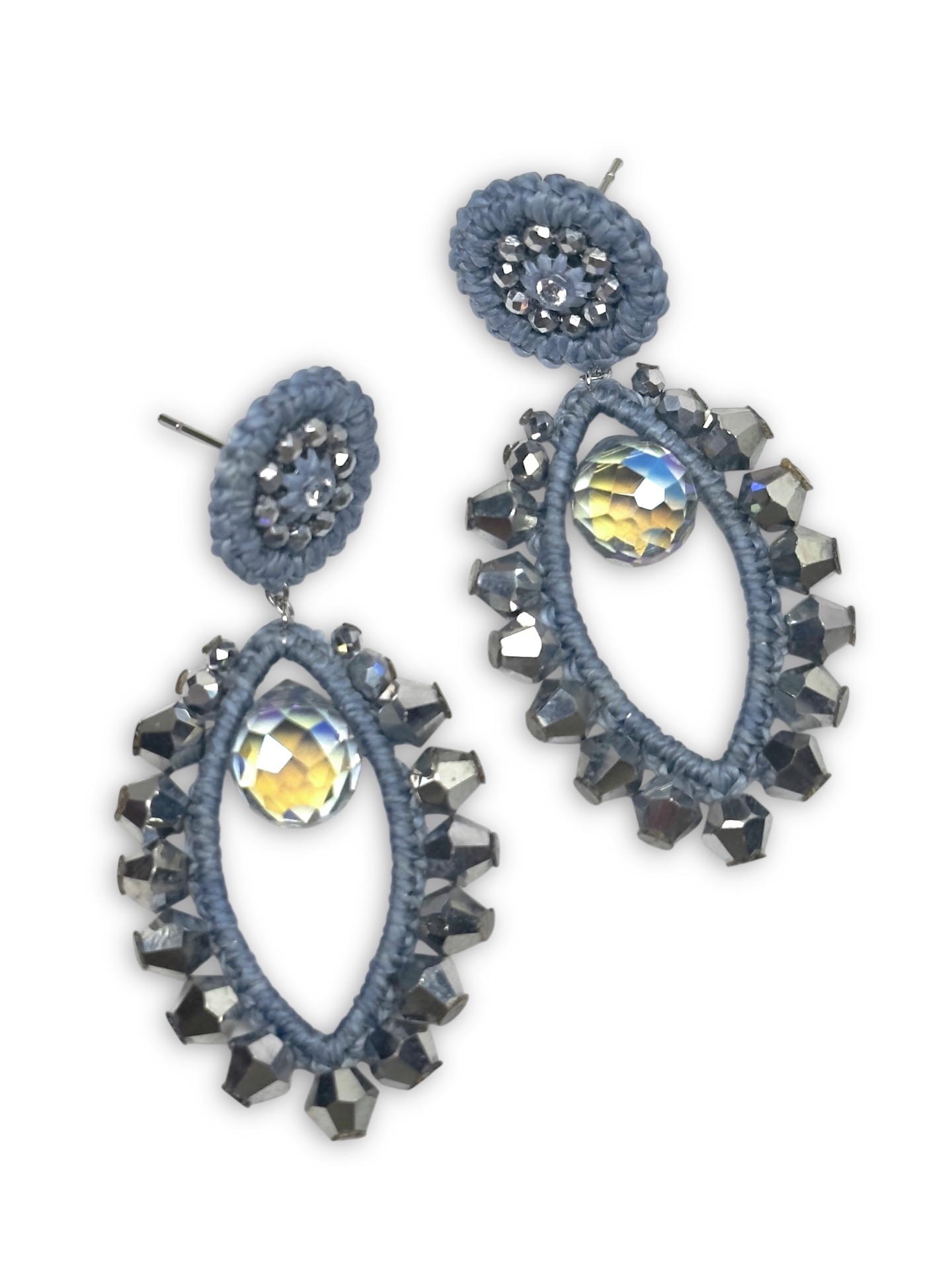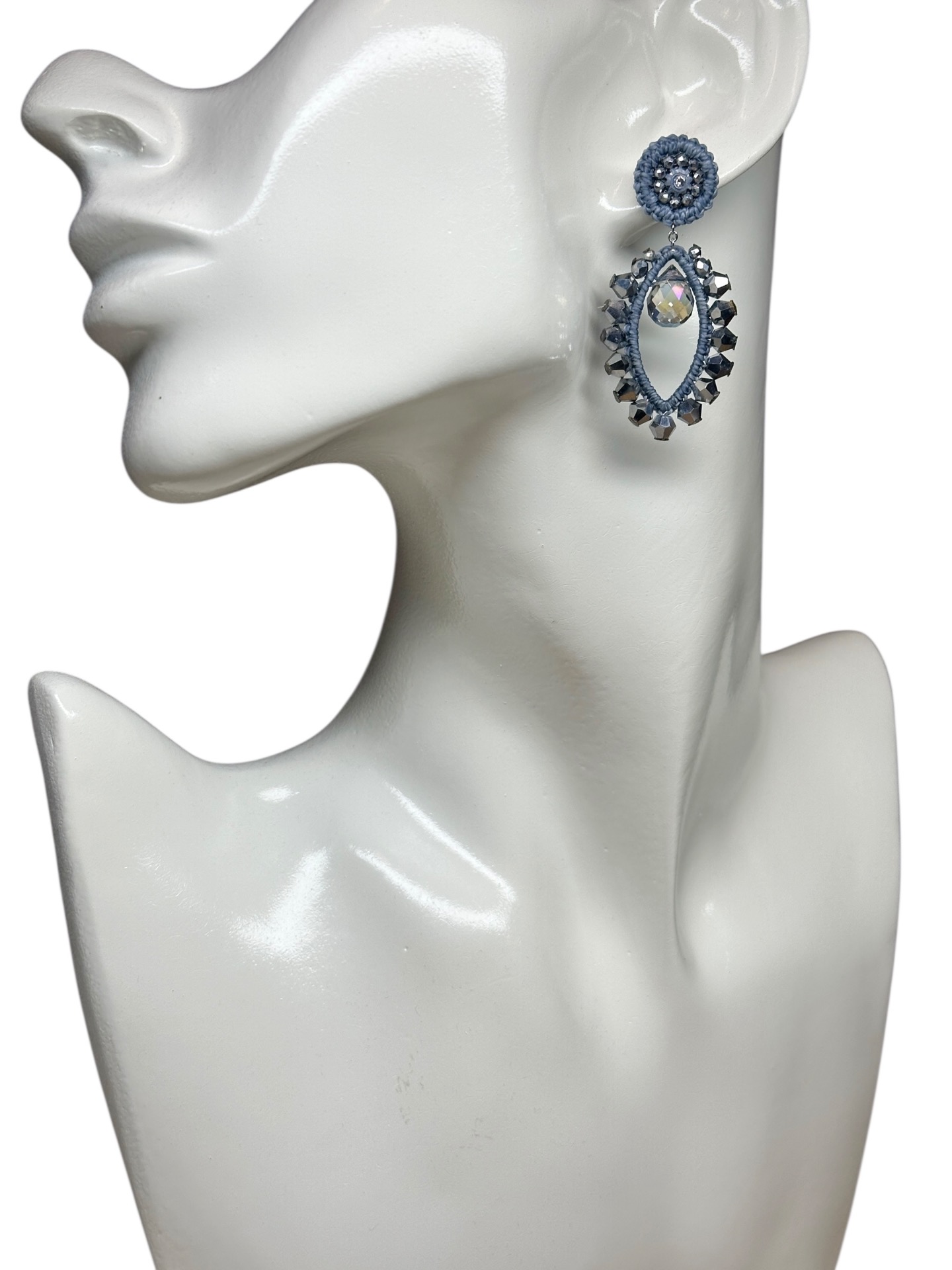 Material: Edelstahl, Silikon-Ohrringverschlüsse (10 mm Ø), Facettierte Glasperlen, Gewachstes Garn, Strasssteine