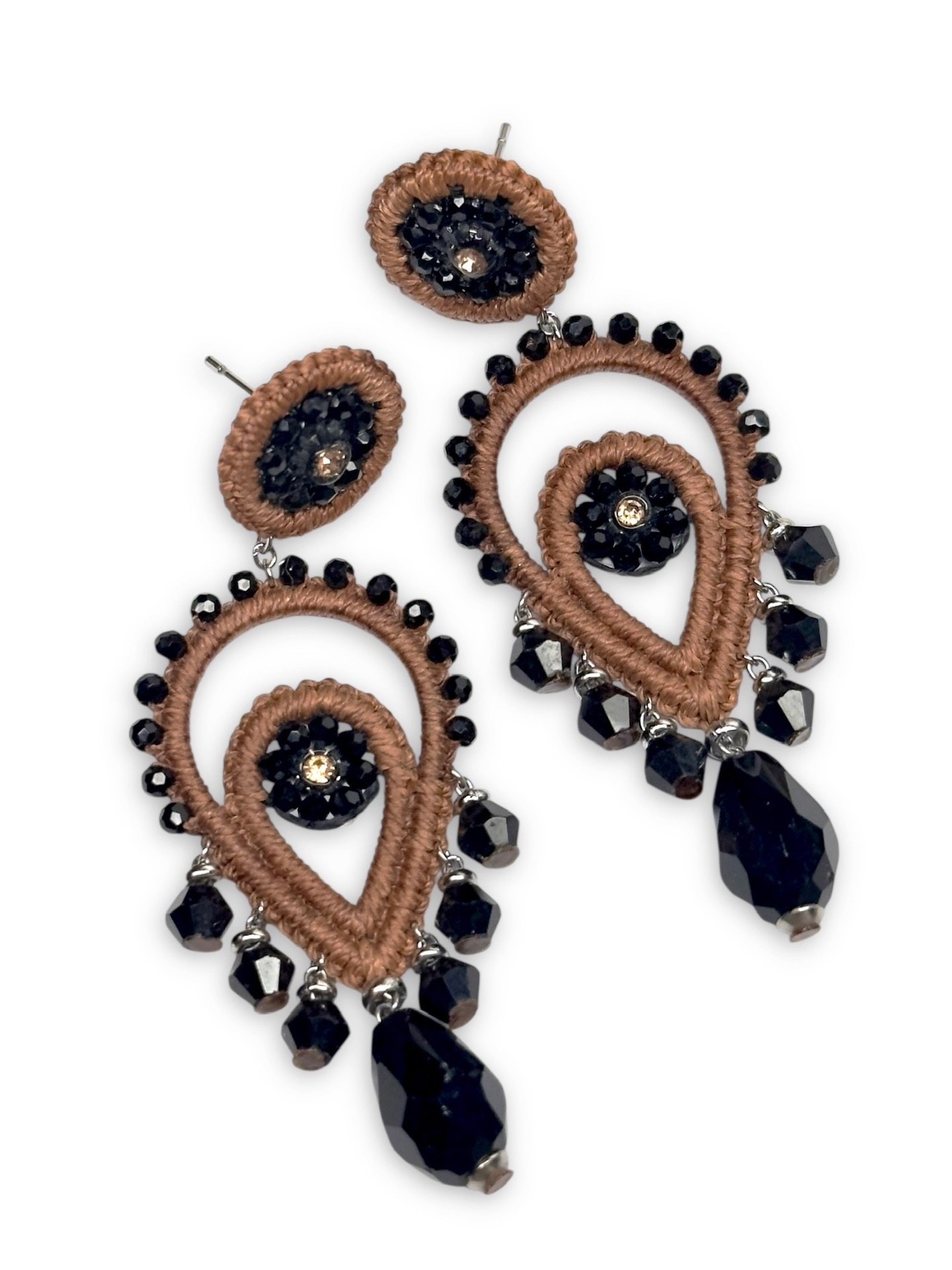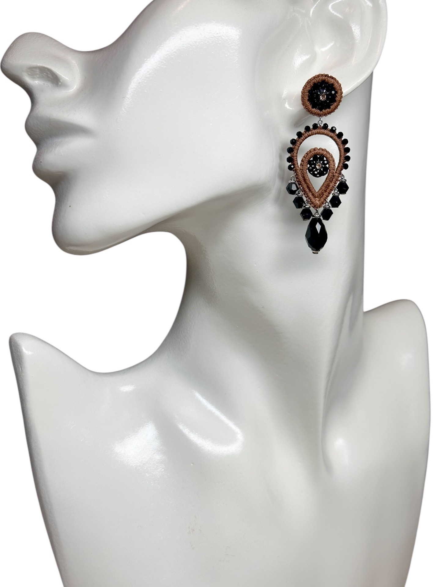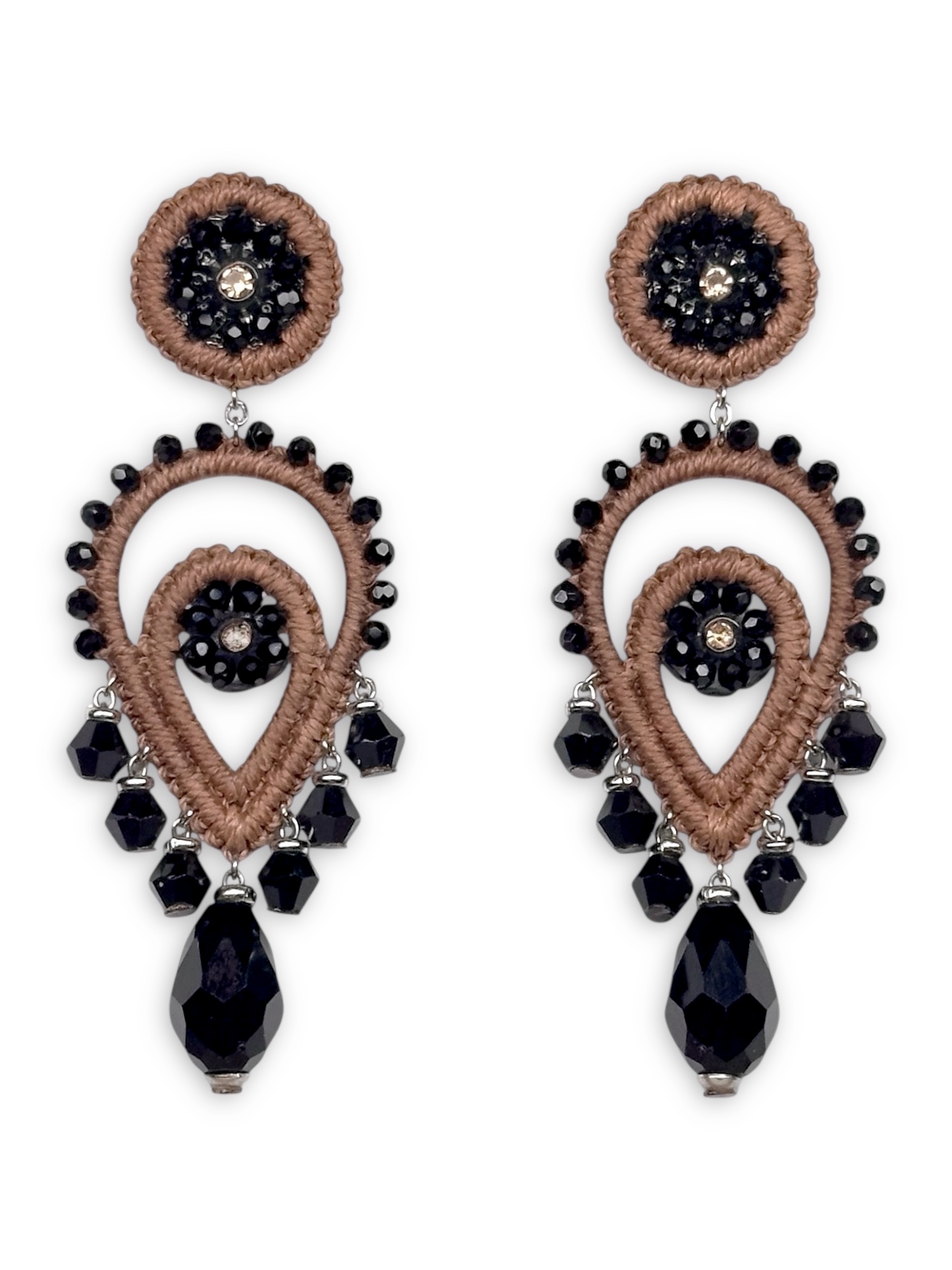 Material: Edelstahl, Silikon-Ohrringverschlüsse (10 mm Ø), Facettierte Glasperlen, Gewachstes Garn, Strasssteine