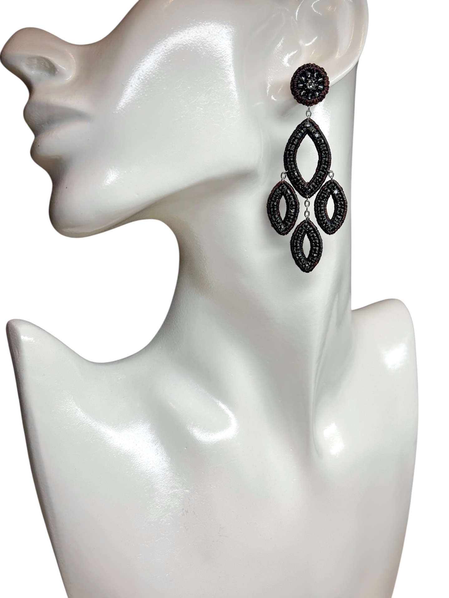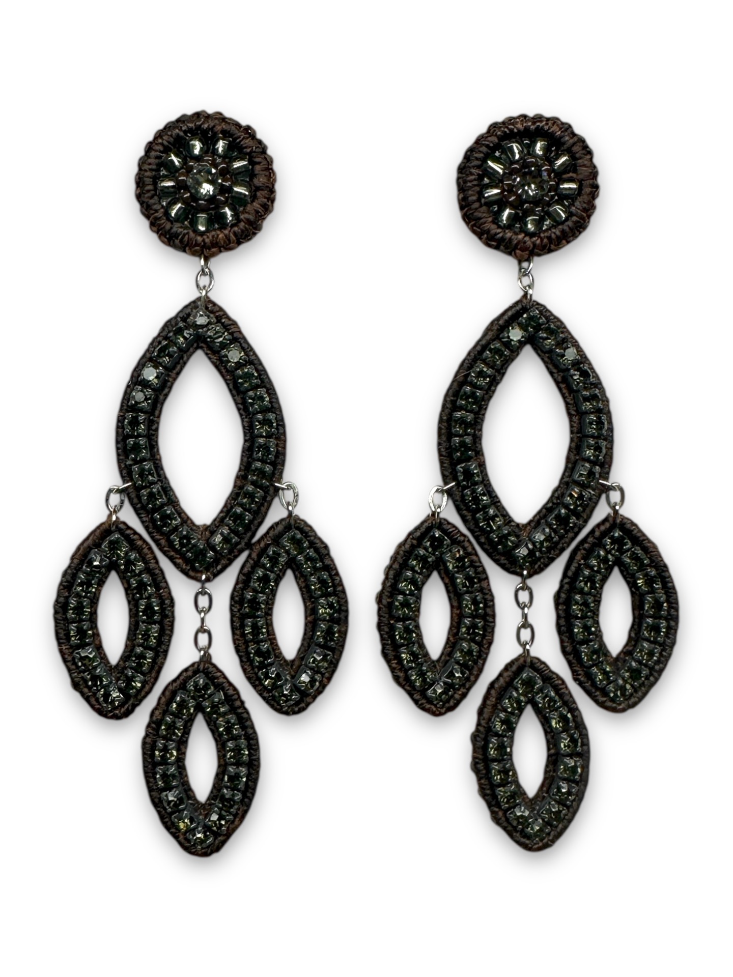 Material: Edelstahl, Silikon-Ohrringverschlüsse (10 mm Ø), Facettierte Glasperlen, Miyuki/Toho Perlen, Gewachstes Garn, Strasssteine