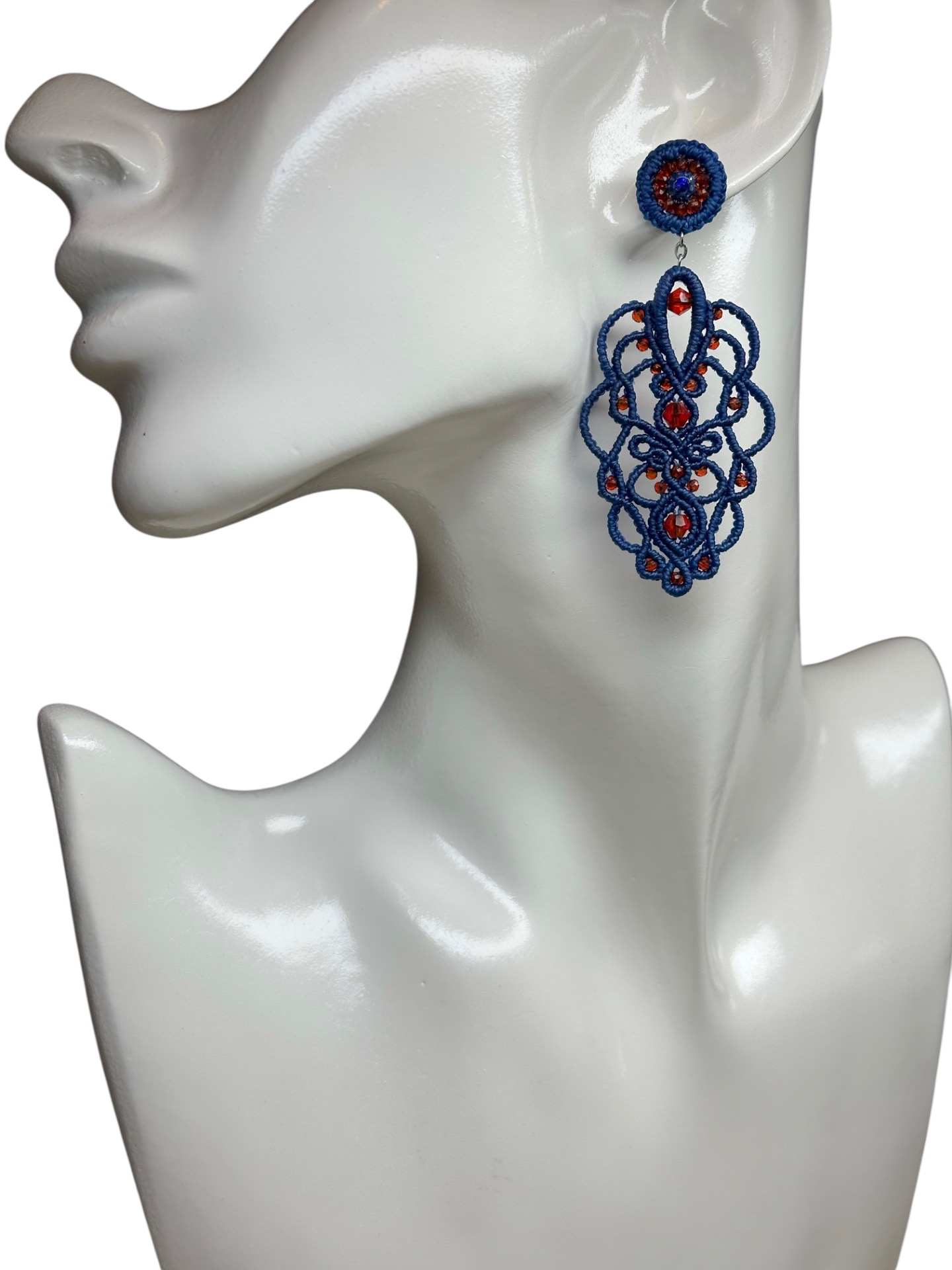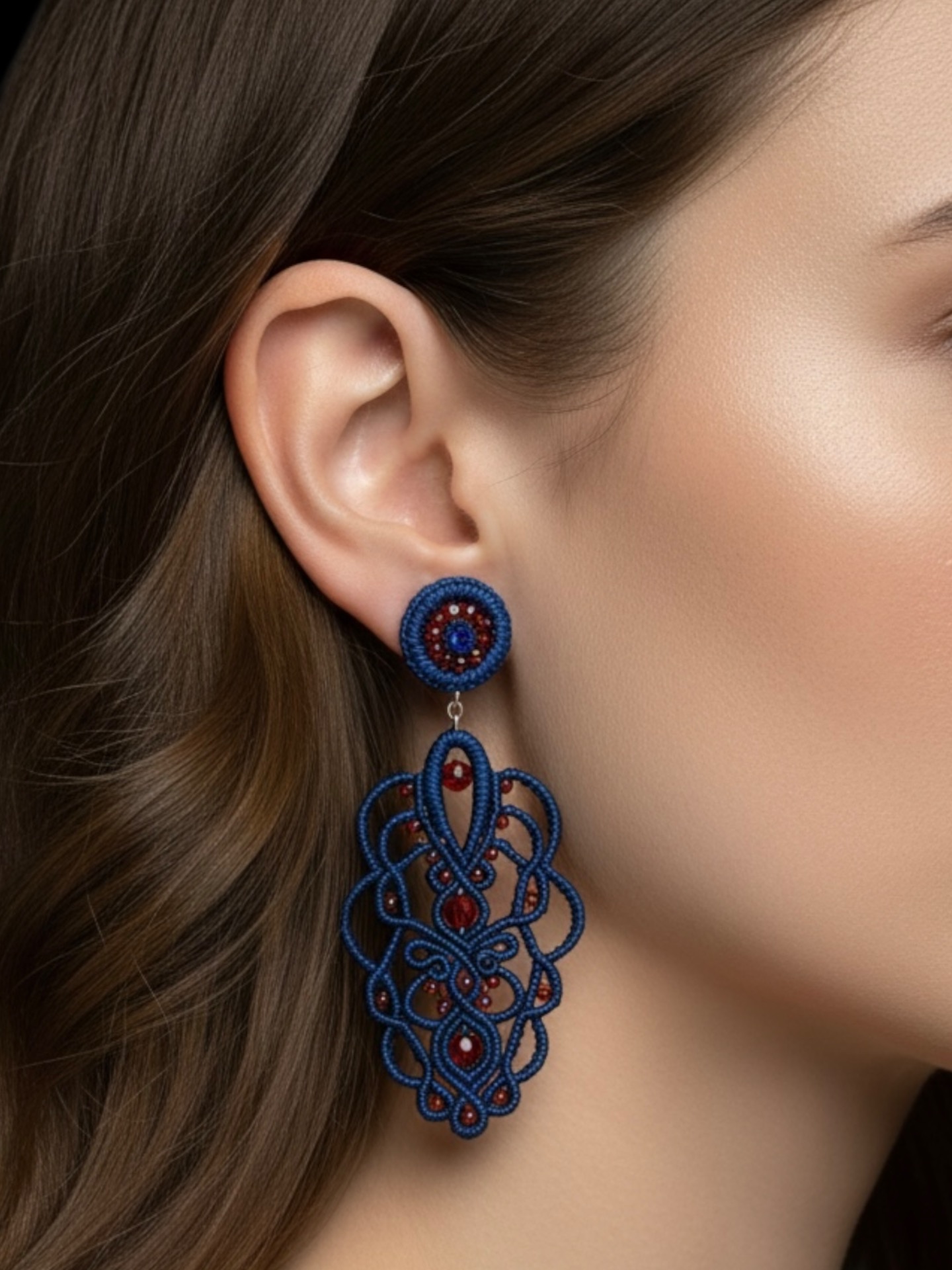 Material: Edelstahl, Silikon-Ohrringverschlüsse (10 mm Ø), Facettierte Glasperlen, Gewachstes Garn, Strasssteine