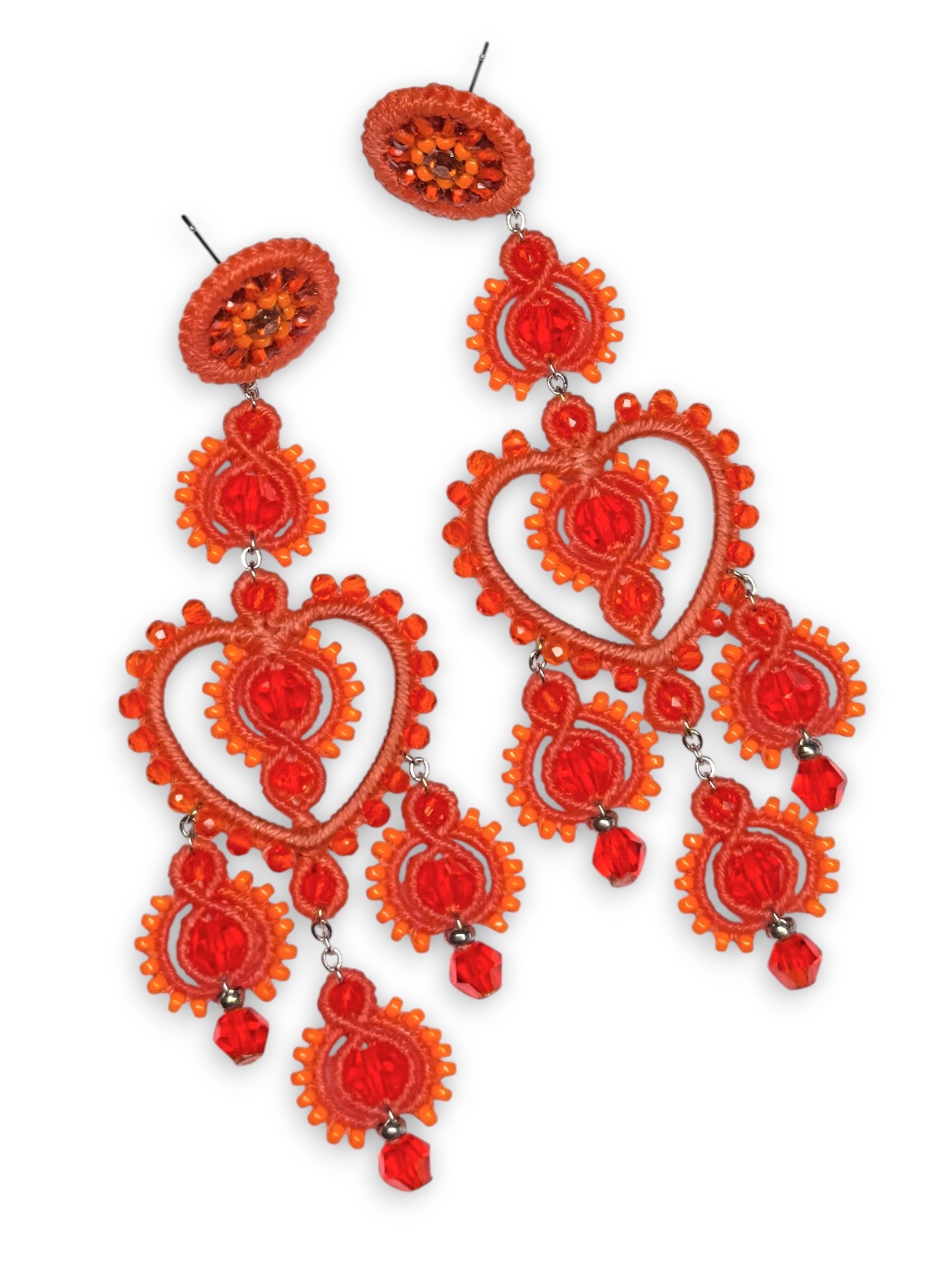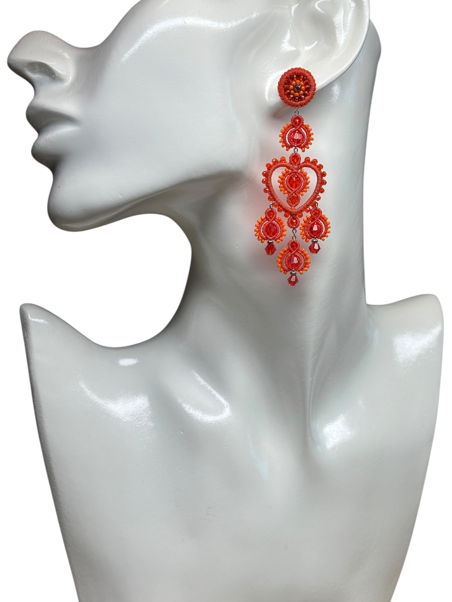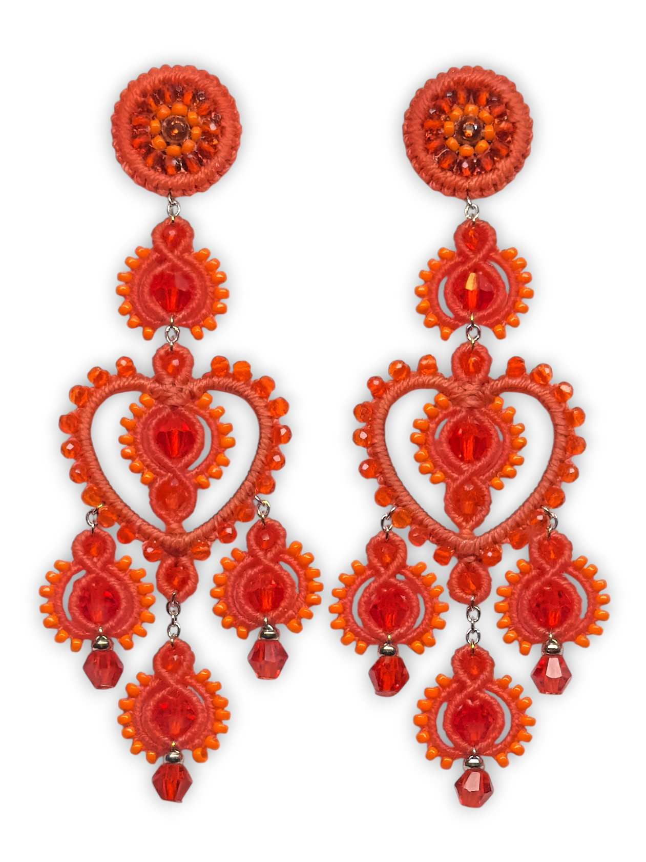 Material: Edelstahl, Silikon-Ohrringverschlüsse (10 mm Ø), Facettierte Glasperlen, Miyuki Perlen, Gewachstes Garn, Strasssteine