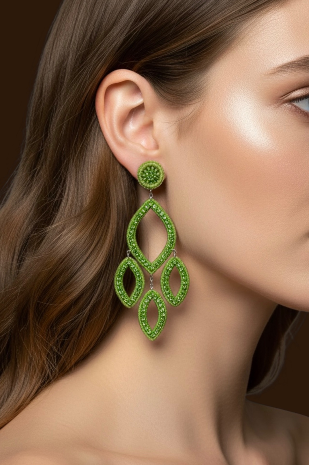 Material: Edelstahl, Silikon-Ohrringverschlüsse (10 mm Ø), Facettierte Glasperlen, Miyuki Perlen, Gewachstes Garn, Strasssteine