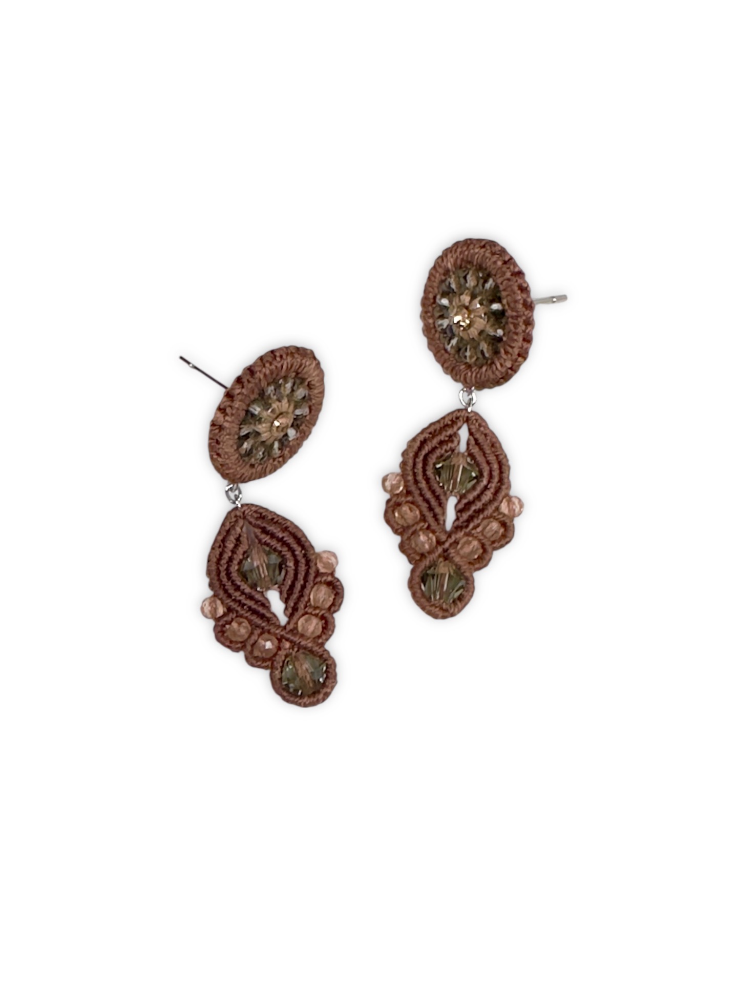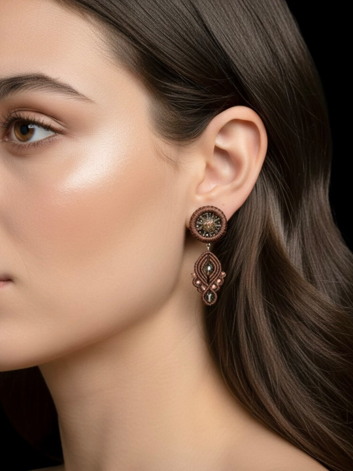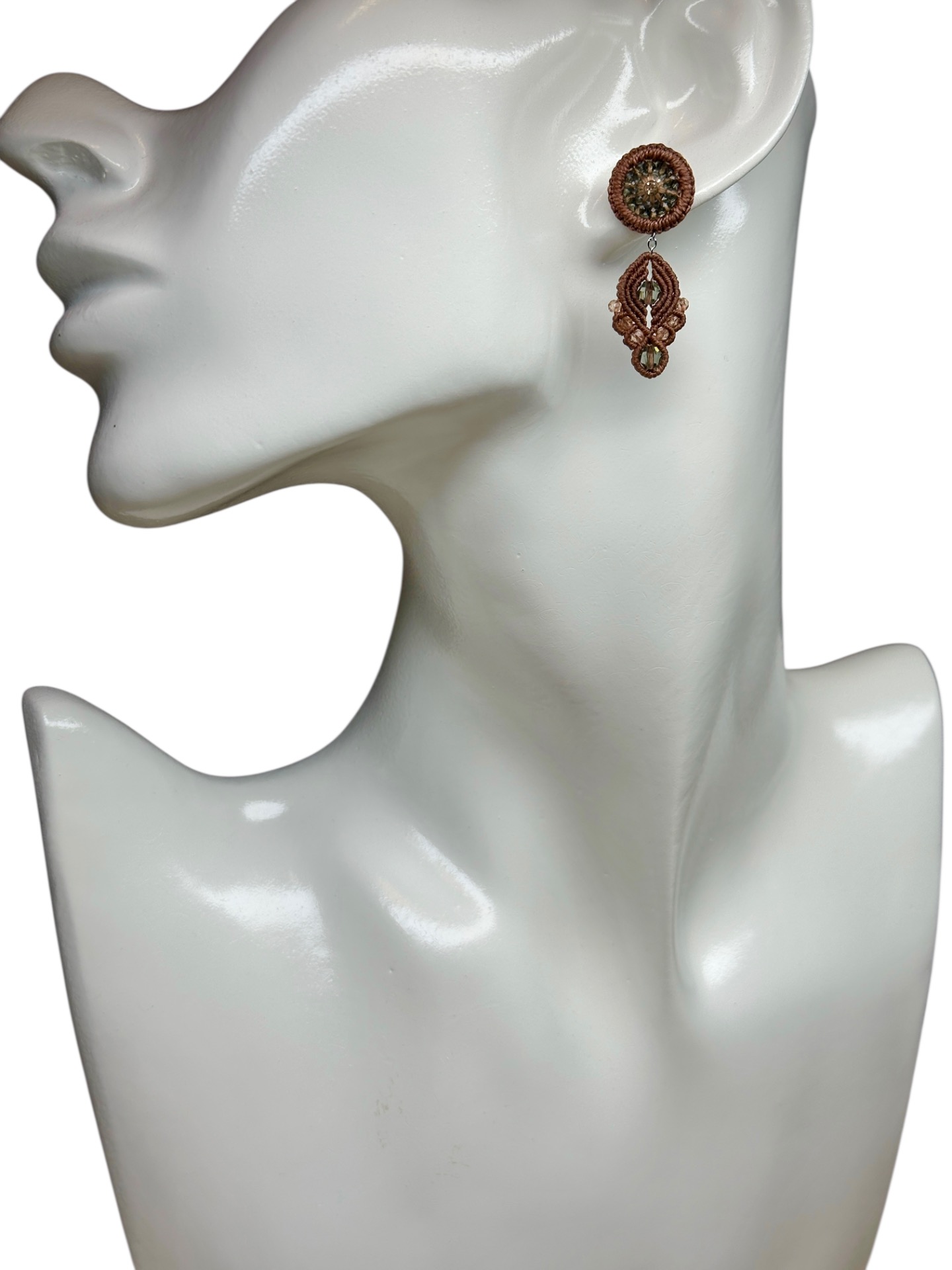 Material: Edelstahl, Silikon-Ohrringverschlüsse (10 mm Ø), Facettierte Glasperlen, Gewachstes Garn, Strasssteine