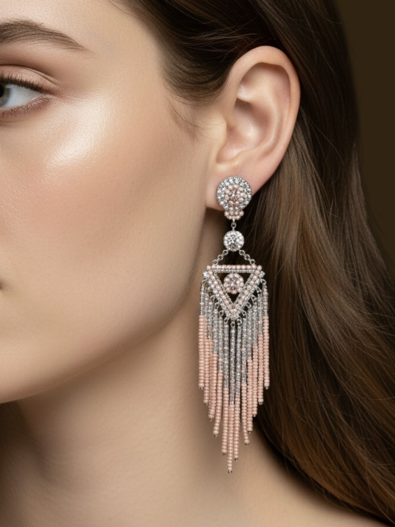 Material: Edelstahl, Silikon-Ohrringverschlüsse (10 mm Ø), Miyuki Perlen, Strasssteine