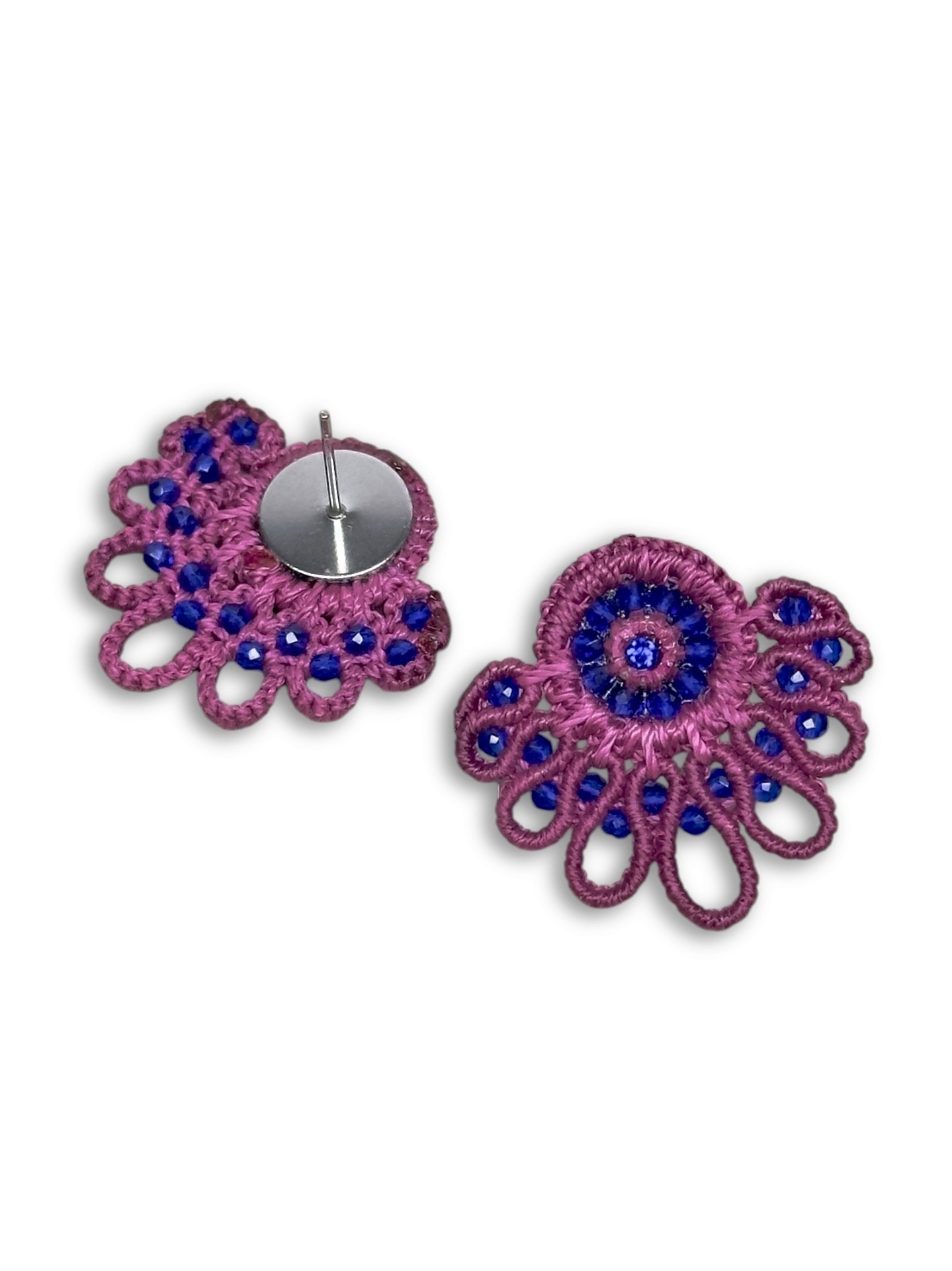 Material: Edelstahl, Silikon-Ohrringverschlüsse (10 mm Ø), Facettierte Glasperlen, Gewachstes Garn, Strasssteine