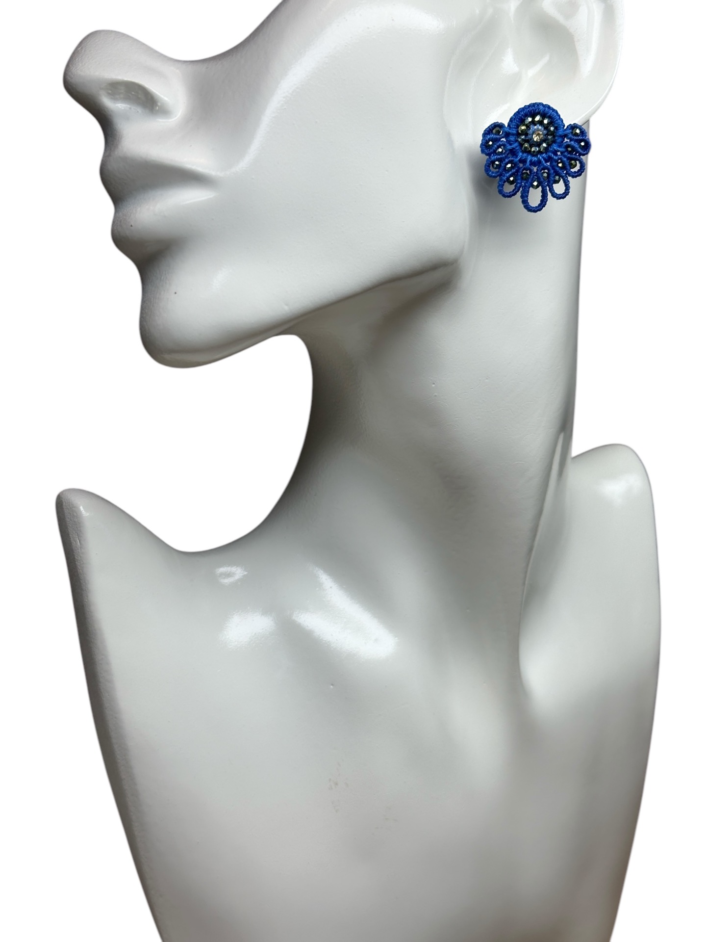 Material: Edelstahl, Silikon-Ohrringverschlüsse (10 mm Ø), Facettierte Glasperlen, Gewachstes Garn, Strasssteine
