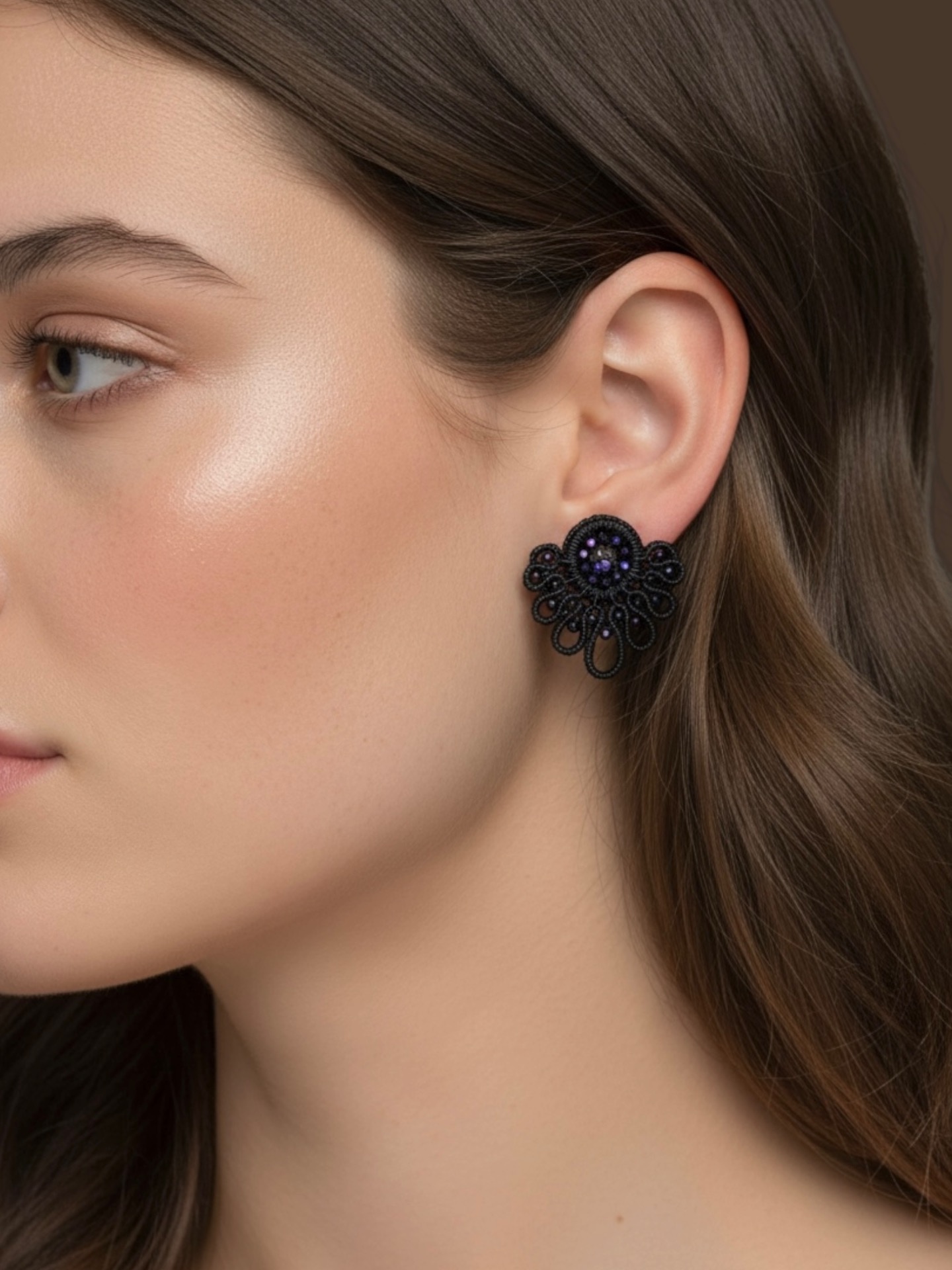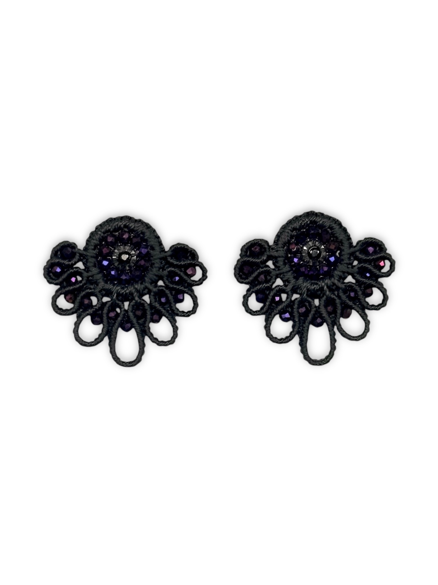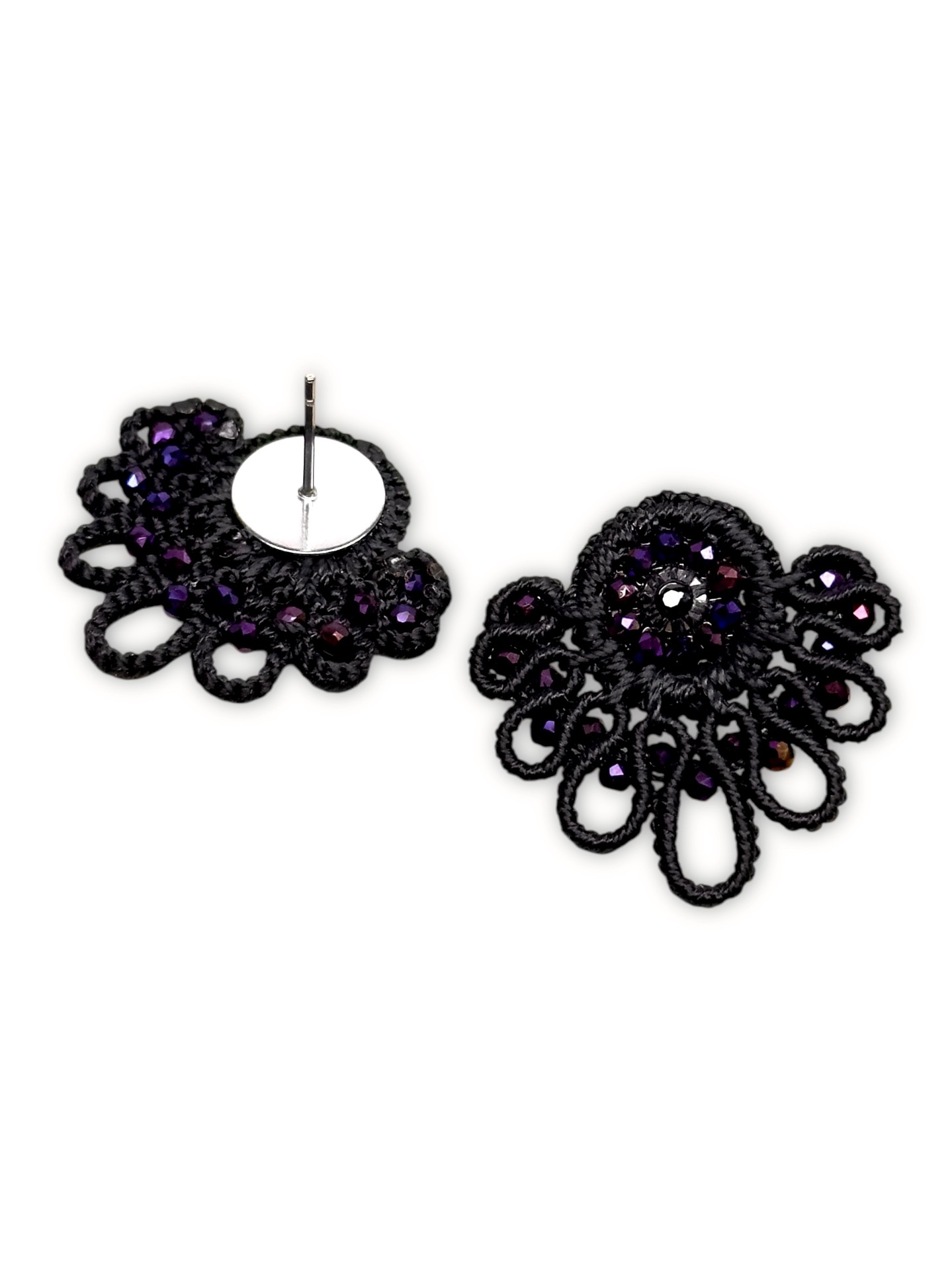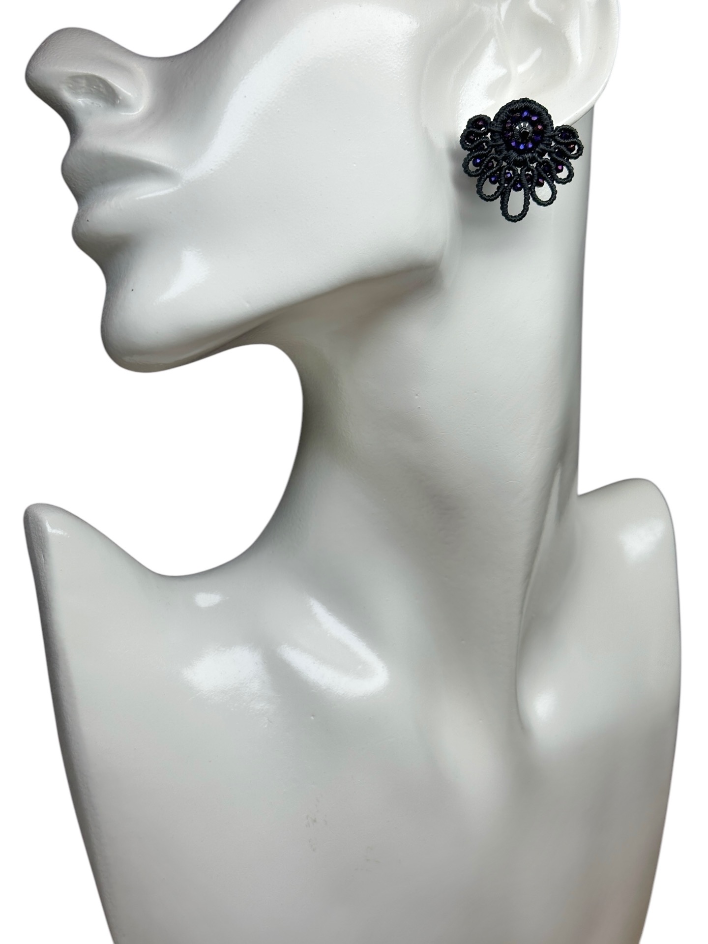 Material: Edelstahl, Silikon-Ohrringverschlüsse (10 mm Ø), Facettierte Glasperlen, Gewachstes Garn, Strasssteine