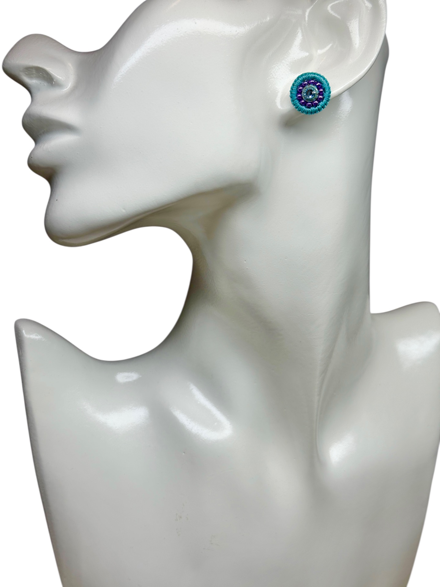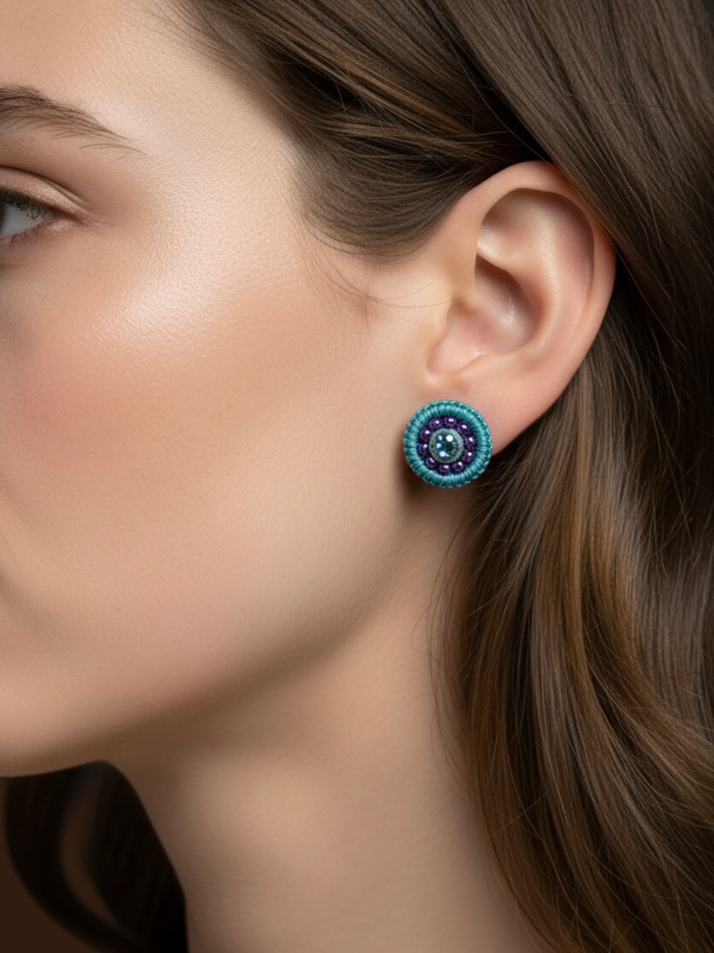 Material: Edelstahl, Silikon-Ohrringverschlüsse (10 mm Ø), Miyuki Perlen,Polyester Garn, Strasssteine